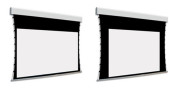 Ook worden beide projectiedoeken vlak gehouden middels het tensioned systeem dat ook hier bestaat uit twee elastische kabels, één aan beide zijden van elk scherm, welke door gelijk formaat oogjes zijn gehaald. De boog die het aan beide zijden van elk scherm vormt zorgt voor een kreukvrij af- en oprollen, ondanks de aanwezigheid van de oogjes.